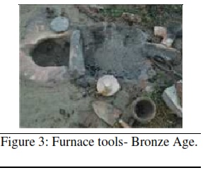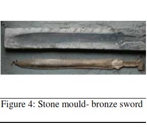 Various types of tools were invented during Bronze Age. This was made possible by the emergence of people who can fabricate bronze, called blacksmith. Blacksmith use fire furnaces to produce bronze materials of different shapes and sizes (hoe, cutlass, axes, containers weapons etc). Below is a sample of furnace and fabricated Iron sword (Figure 3 and Figure 4).