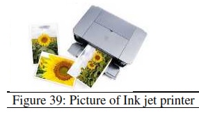 Ink jet printers are printers that print by spraying ionized ink at a sheet of paper. |