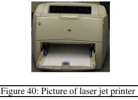 Laser jet printers use laser beam to produce images on papers or transparencies. They are faster and produce high quality prints compared to ink jet. |