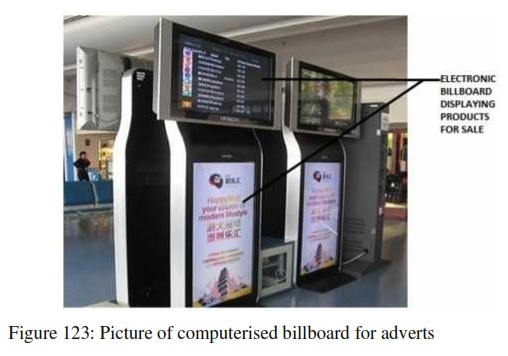 Computers are used for advertising products by companies. This may involve advertising products using computer controlled billboards. Below is an advert on computer screen.
