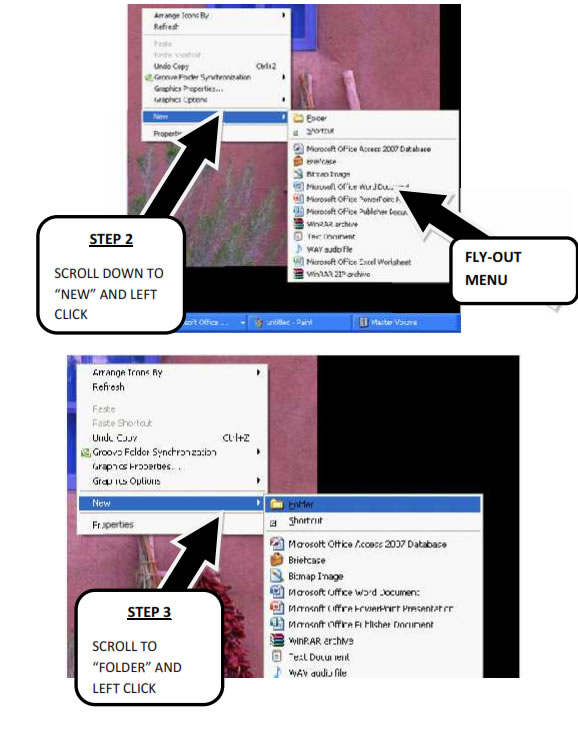 Step 2 Scroll down to “New” and click. A fly-out menu as in the picture below will appear on your desktop.
