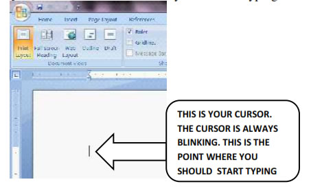 The tool that guides you while typing is the cursor. So the first thing you do before starting typing is locate the position of your cursor on your work space. The place where your cursor is situated is where you will start typing.
