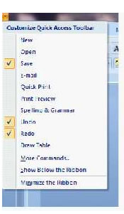 mouse pointer on the Quick access tab and click, a drop down menu as in the picture below will appear on your desk top.
