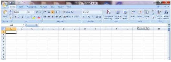 If you click on the icon "Blank workbook" the picture below will appear on your desktop.