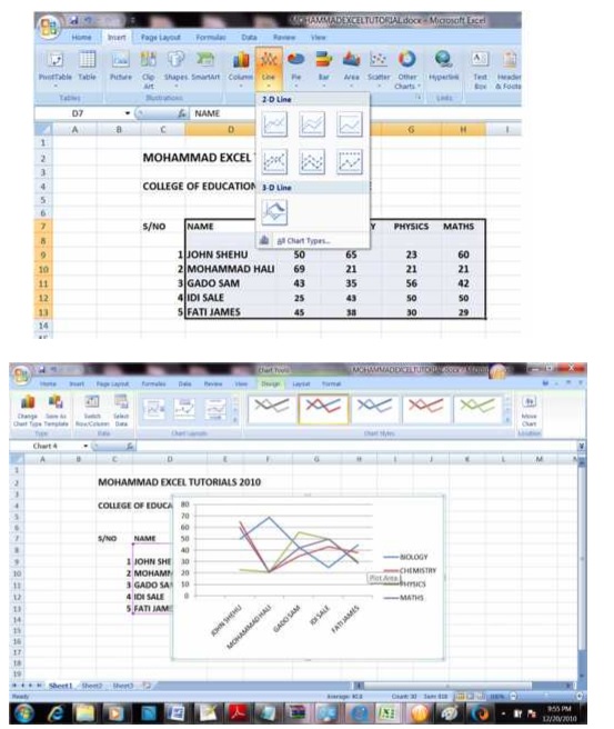 Step 2 Click the Insert tab on the Ribbon Step 3 Click the line graph menu.