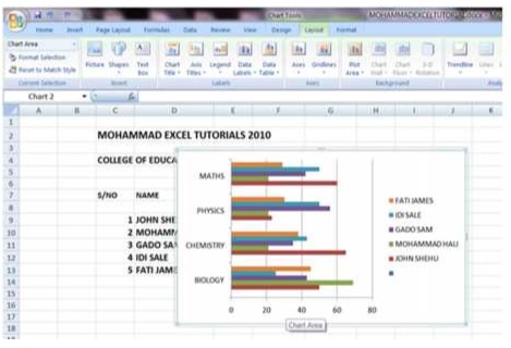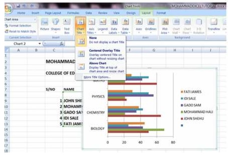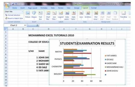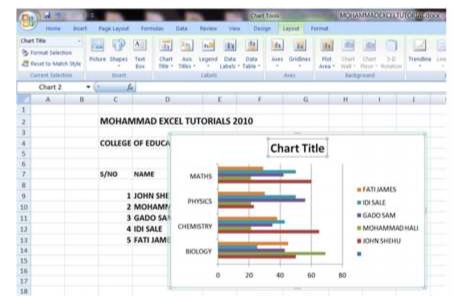 Write chart title- student's examination results in the box titled CHART. You will have the picture below on your desk top.