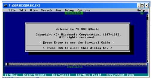Open your Qbasic by double clicking on the icon. You will have something like this on your desk top.
