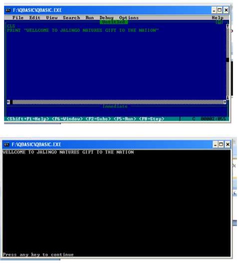 Print "WELLCOME TO JALINGO TARABA STATE"